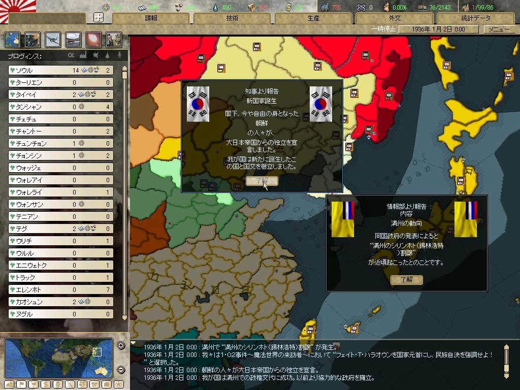 (1936年1月2日の大日本帝国のイベント発動画面)
