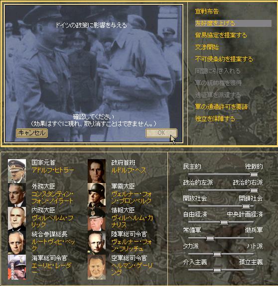 (ドイツ政府との外交画面。選択したのは友好度を上げる)