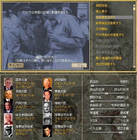 (アメリカ合衆国政府との外交画面。ドイツと同じく友好度)